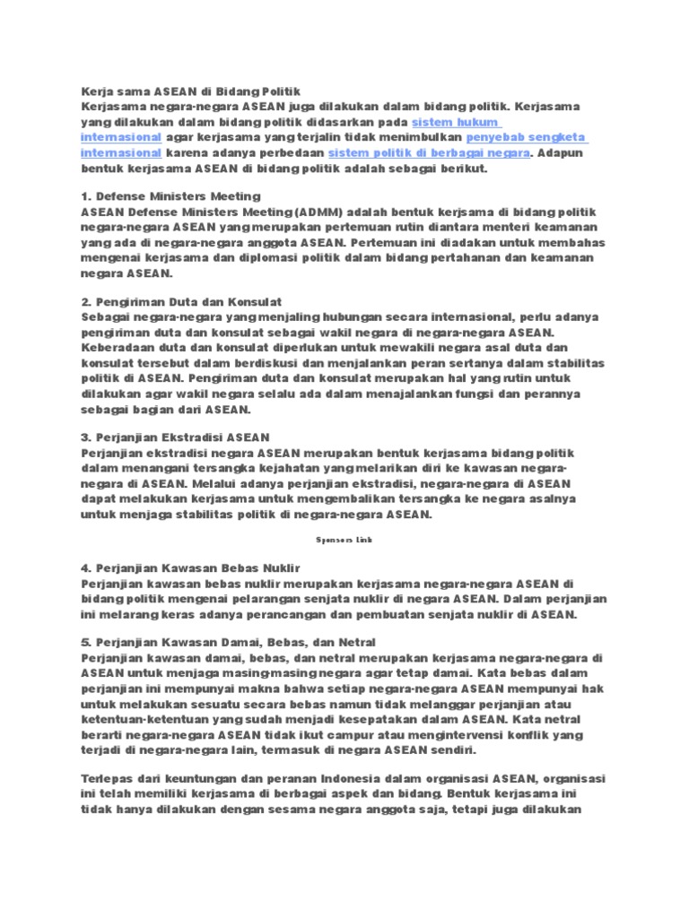 Bentuk kerja sama ini di antaranya. Pengertian contoh asas hubungan arti perbedaan ssemoga artikel ini bermanfaat bagi anda semuanya. Organisasi yang terbentuk pada tanggal 8 agustus 1967 ini telam mampunyai jumlah anggota sebanyak sepuluh negar termasuk salah satunya adalah negara infonesia. Kerjasama negara negara asean juga dilakukan dalam bidang politik.