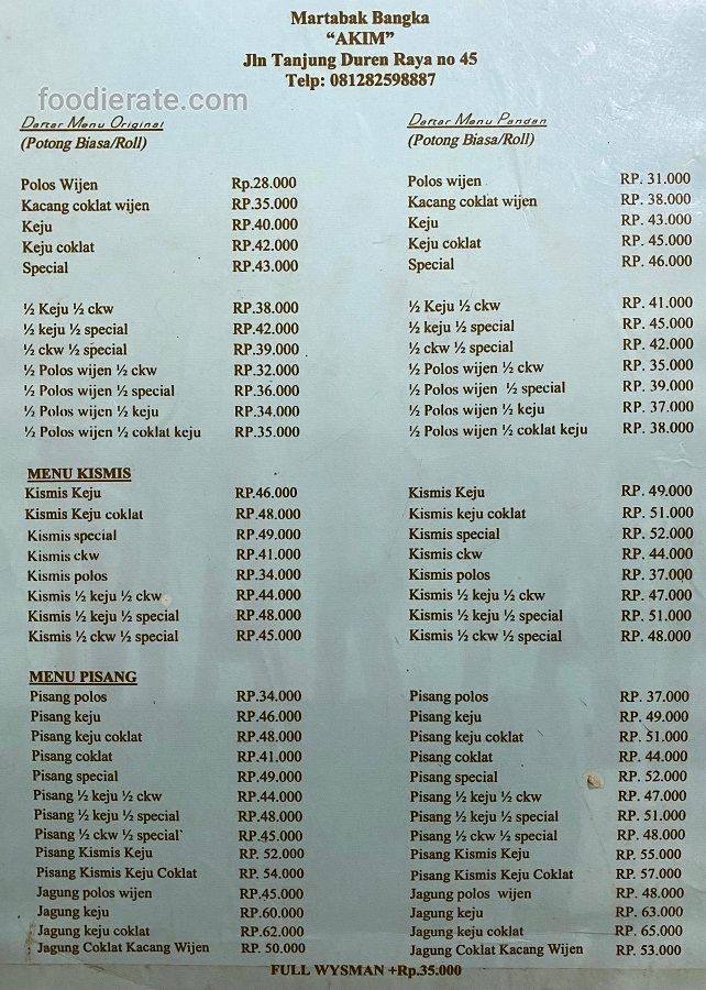 Martabak bangka akim menu. Customers are free to download and save these images but not use these digital files watermarked by the zomato logo for any commercial purpose without prior written permission of zomato. Order now and get it delivered to your doorstep with grabfood. Di sini martabaknya hanya menjual 2 macam rasa yaitu rasa adonan biasa dan rasa pandan.