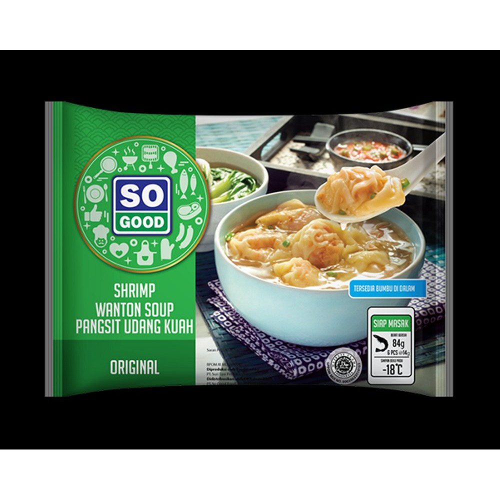 Kelezatan udang utuh berbalut kulit pangsit yang lembut dan bumbu spesial tersaji dalam so good pangsit udang kuah dilengkapi dengan bumbu instant sehingga mudah disajikan menjadi hidangan pangsit udang lezat dan bergizi. Sajikan so good pangsit udang bersama tumis daging cincang. Produk so good melewati proses pemasakan hingga suhu 170 c selama tidak kurang dari 3 menit langsung dibekukan cepat menggunakan teknologi iqf untuk menjamin kesegaran kelezatan dan nutrisi kandungan produknya. Kelezatan udang utuh berbalut kulit pangsit yang lembut dan bakso ikan.