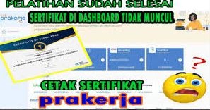 Sertifikat pelatihan prakerja. Masalah nya sama saya gel. Selama belum ada sertifikat di sana insentif tidak akan dicairkan. Untuk peserta yang masih baru atau yang baru mendaftar terntu hal ini sangat membingungkan padahal semua pelatihan sudah diselesaikan dan juga sertifikat sudah keluar tapi kenapa sertifikat belum muncul di dashboard prakerja. Kalian bisa lihat didasboard kartu prakerja kalian apakah sudah ada sertifikat di sana setelah menyelesaikan pelatihan.