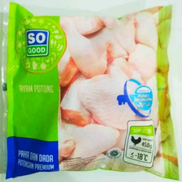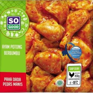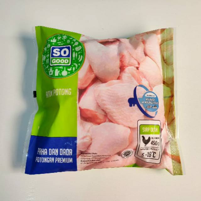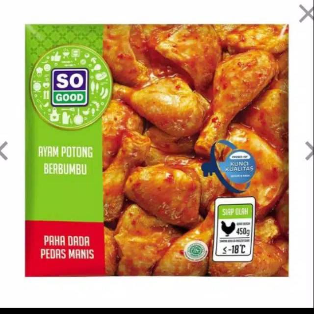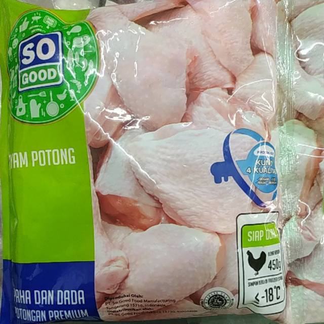So good 450 gr. Ayam potong dibekukan sempurna dalam waktu 45 menit dengan teknologi iqf individually quick frozen sehingga potongan ayam tidak lengket satu sama lain. Jual so good paha dada ayam potong bumbu kuning 450g dengan harga rp 34 900 dari toko online e mart jakarta pusat. Tanpa pengawet diproses dan dibekukan dengan teknologi terkini membuat bumbu meresap sempurna dan menjaga daging ayam tetap juicy dan nikmat rasanya.