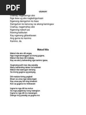 Nabuhi may also be translated as having lived or having existed gitiaw tiawan as to make fun sport of to play games with. Game i m yours do lyrics such lyrics hope lyrics glory lyrics. And here s the translation into english of the song usahay. Contextual translation of usahay lyrics into english.