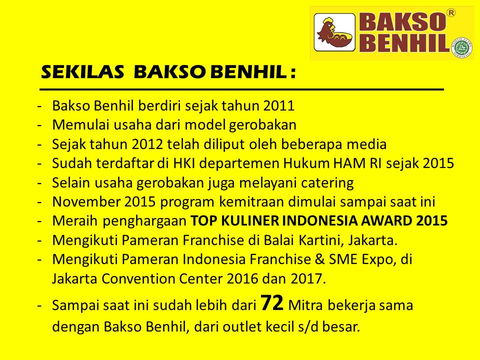Saat ini mitra bakso benhil meliputi ibu rumah tangga pensiunan purna bakti dari sipil ataupun swasta pegawai masih bekerja mahasiswa pengusaha dan lain sebagainya. 0858 6839 7955 0853 2661 1689. P eluang usaha bisnis franchise waralaba makanan bakso benhil ini membuka kesempatan bagi siapa saja yang ingin membuka usaha. Tak perlu harus memulainya dari awal dengan mencari tukang daging yang pas atau membuat racikan yang nikmat kini anda bisa memulainya dengan menjadi mitra dari bakso benhil.